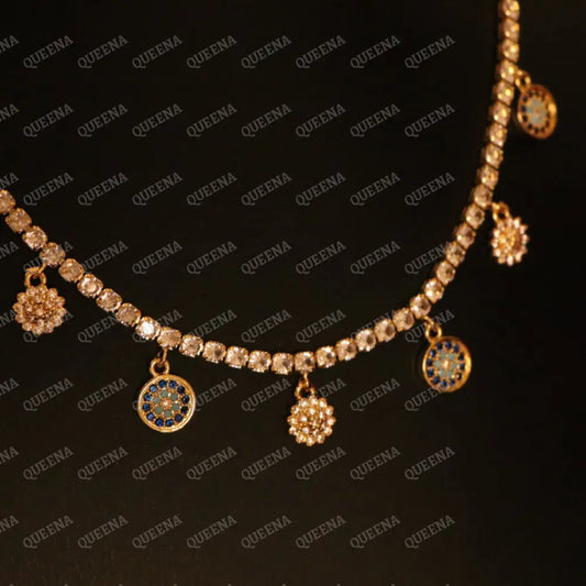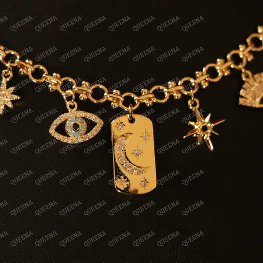 Golden Chin Necklace with Unique Charms Pendants