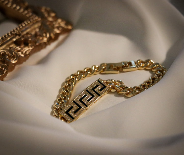 18K Gold Plated MONACO Golden Chain Bracelet Studded with Full Zircon