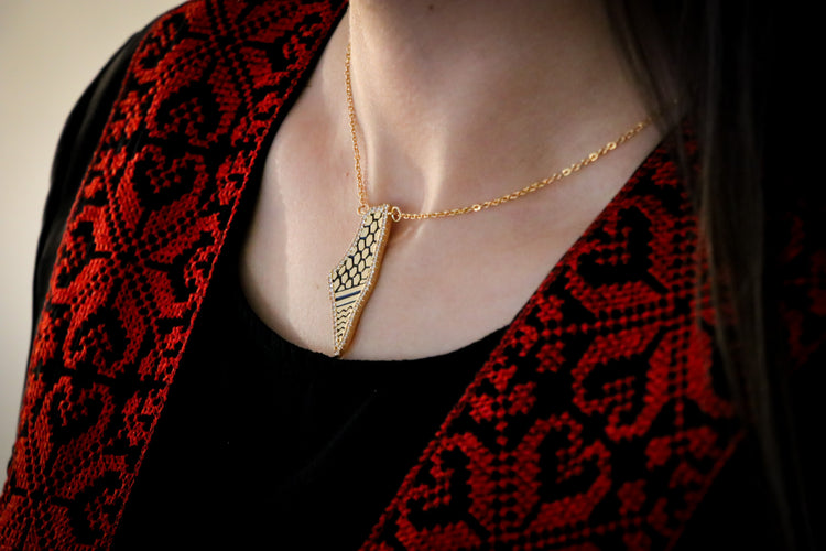 Luxury Golden Zircon Palestine Country Map Necklace Written on it (On this earth there is that which deserves life) written In Arabic Calligraphy